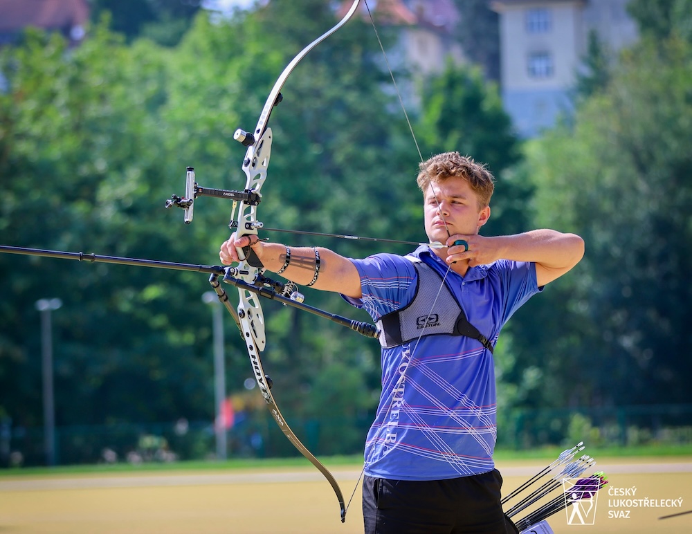 Na lukostřelnici na Tyršově vrchu se věnuje tréninku lukostřelby v rámci lekcí pro veřejnost.